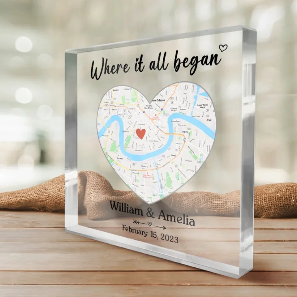 Where It All Begin Custom Map Acrylic Plaque, Long Distance Relationship Gift, Personalized Gifts For Couples