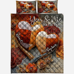 You & Me We Got This Personalized Bed Set, Custom Name Quilt Set, Couple Anniversary Gift