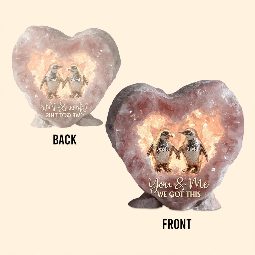 You & Me We Got This Rose Quartz Color Penguin Couple Acrylic Plaque, Personalized Valentines Gift