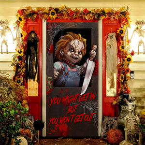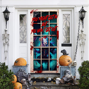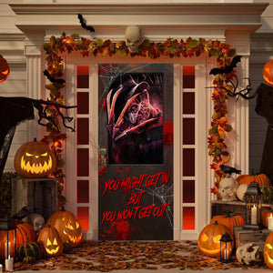 You Might Get In But You Won’t Get Out Halloween Door Cover, Horror Movie Gift