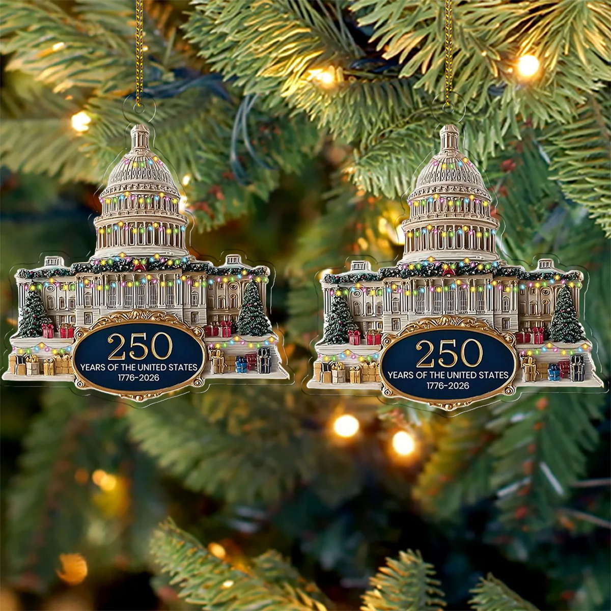 250 Years Anniversary Acrylic Ornament, 250 Years United States of America, Patriotic 1776–2026 Christmas Ornament