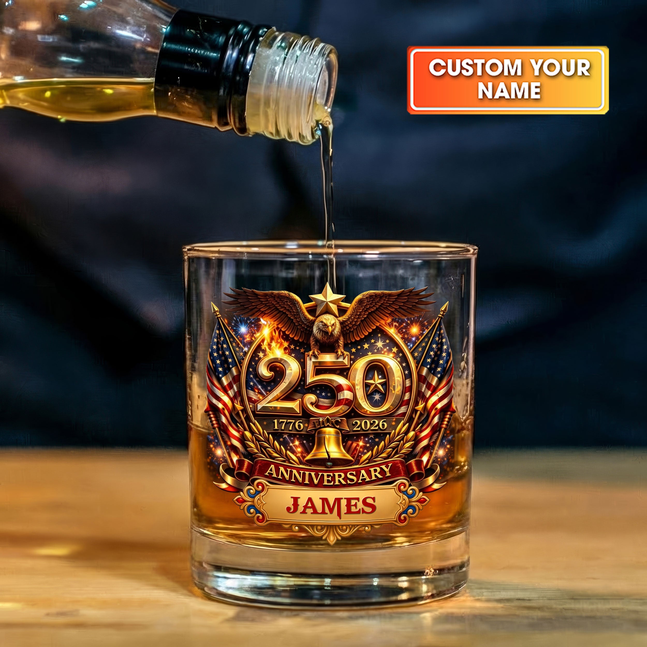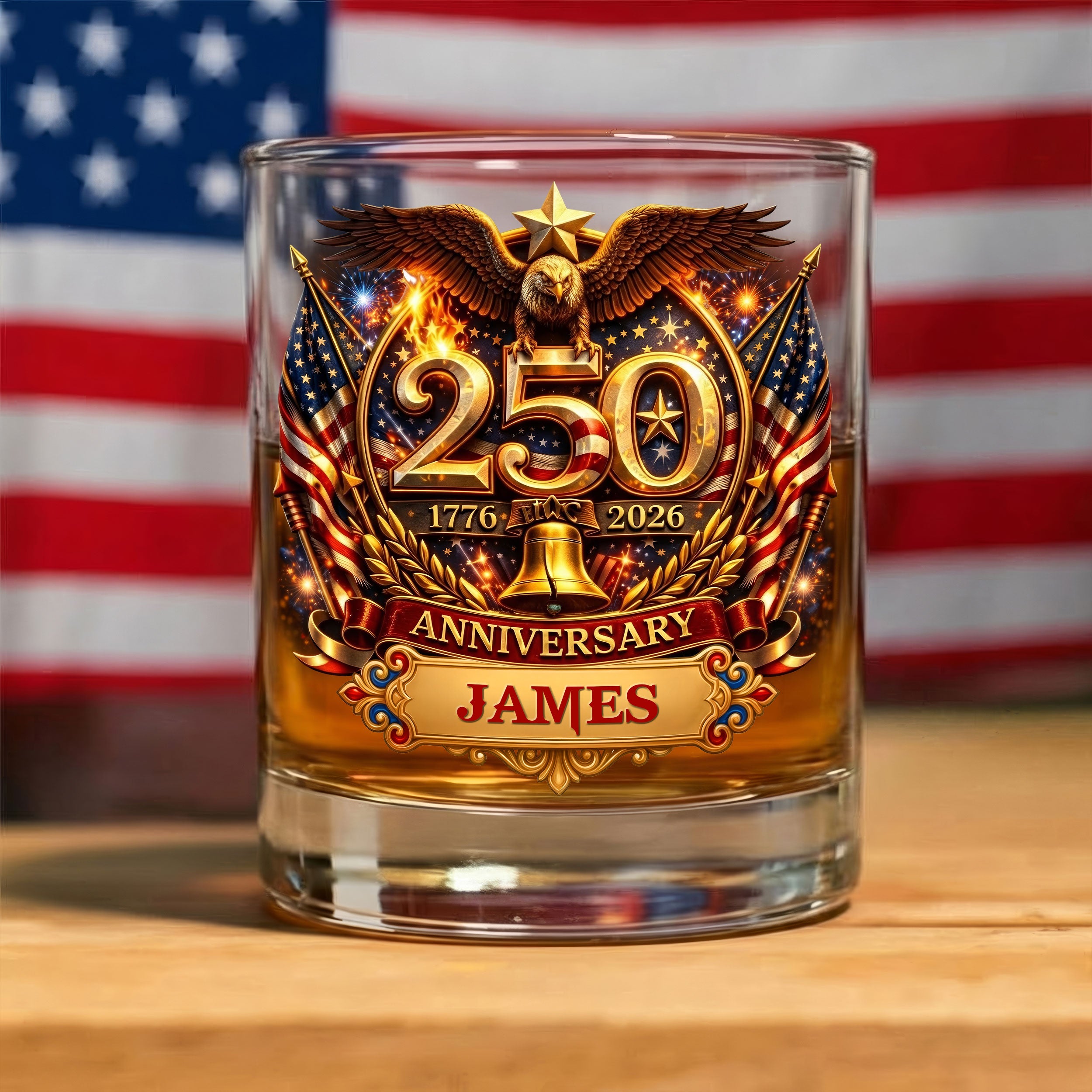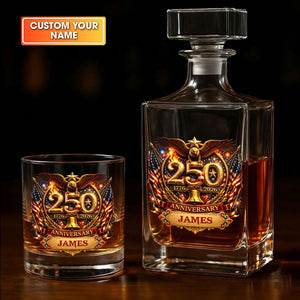 250th Anniversary Liberty Bell Flag And Bald Eagle Whiskey Decanter Set, America Patriot Whiskey Glasses