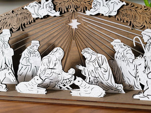 - 3D layered design: Adds depth and visual interest to the Nativity scene.
