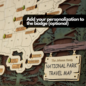 With our custom engraved badge, your wood map becomes a one-of-a-kind storyteller - marking your family name and the beginning of countless outdoor journeys through America's most beautiful parks.