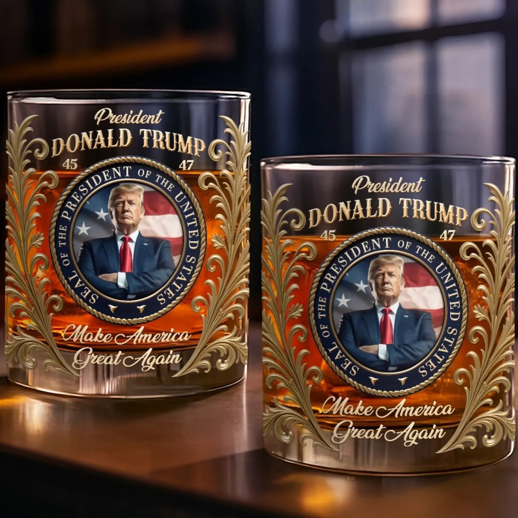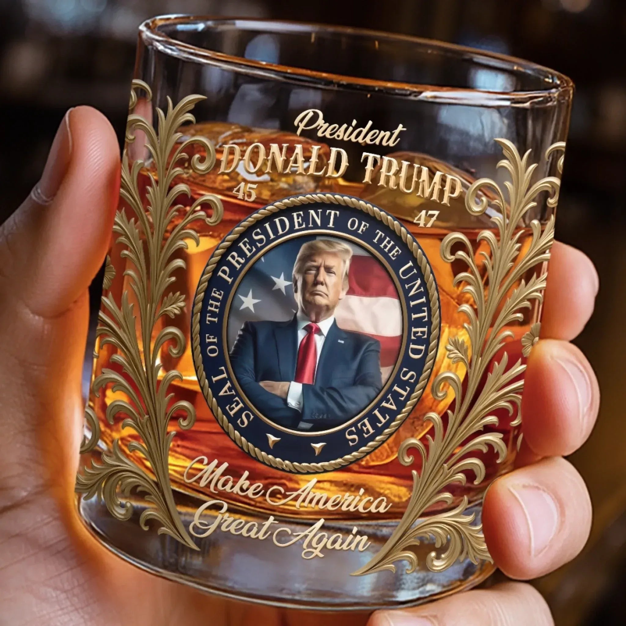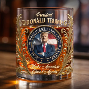 45 47 Trump 11oz Whiskey Glass - MAGA Luxury Whiskey Glass
