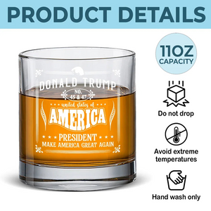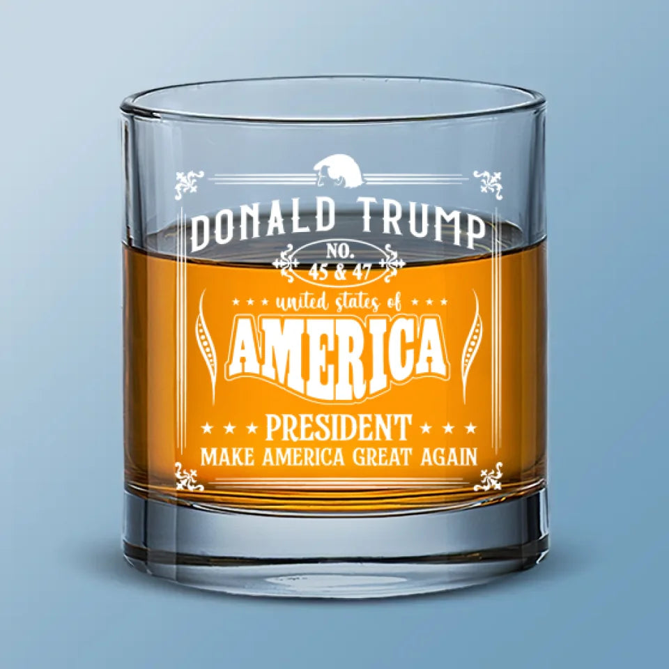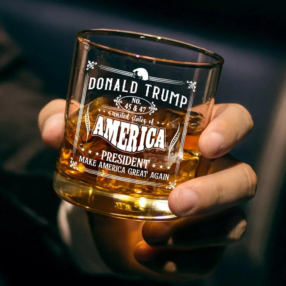 45 47 US President Trump2024 Whiskey Glass, Old Fashioned Glass, Cool Christmas Gifts For Dad