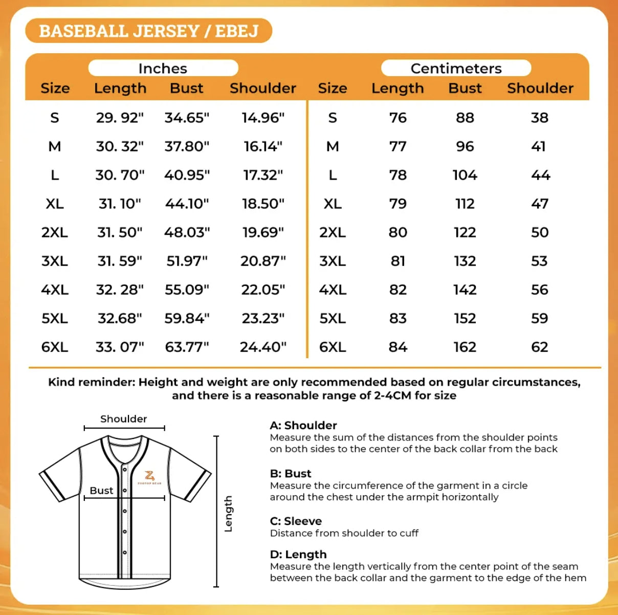 | 5XL | 34 | 33 | 40 |