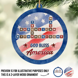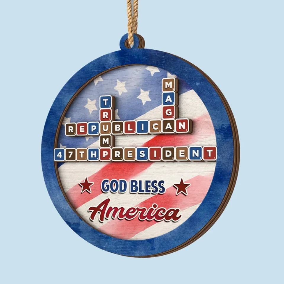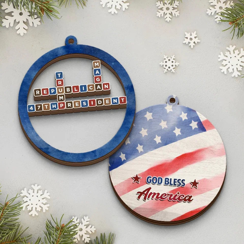 47th God Bless America Crossword Puzzle Ornament, Trump2024 2-Layer Wooden Ornament, Christmas Decor