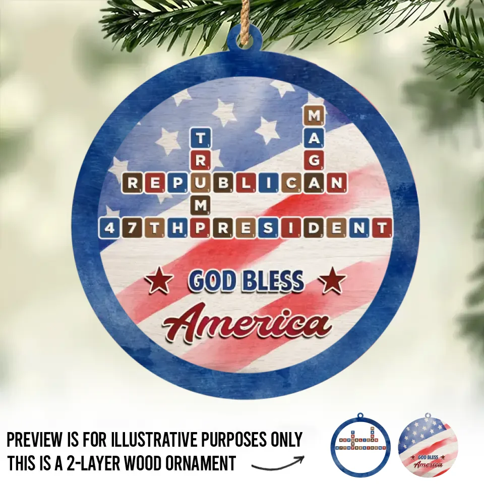 47th God Bless America Trump 2024 2-Layer Wooden Ornament - Christmas Decor