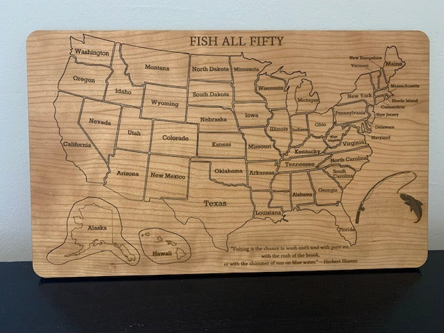50 States Fishing Tracker Board, States Tracker, Gift For Fishers