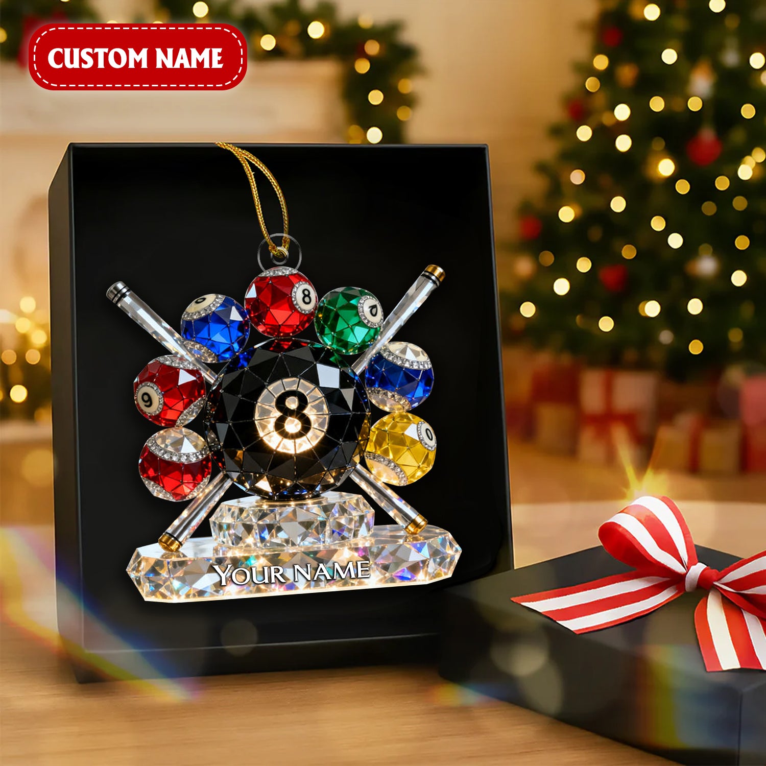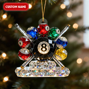 8 Pool Custom Name Stained Glass Effect Acrylic Christmas Ornament, Xmas Decor, Gifts For Pool Players