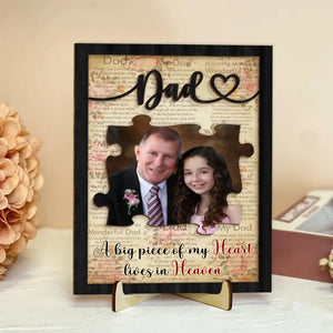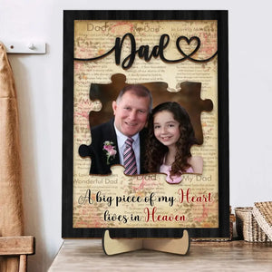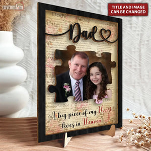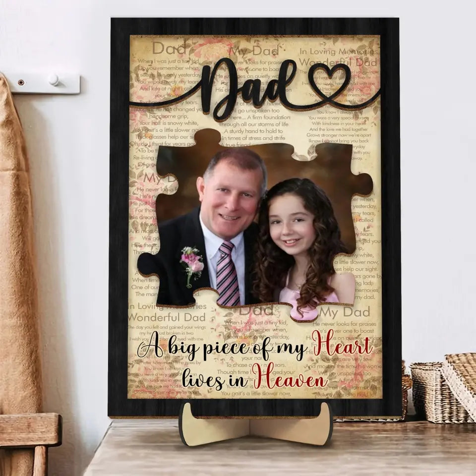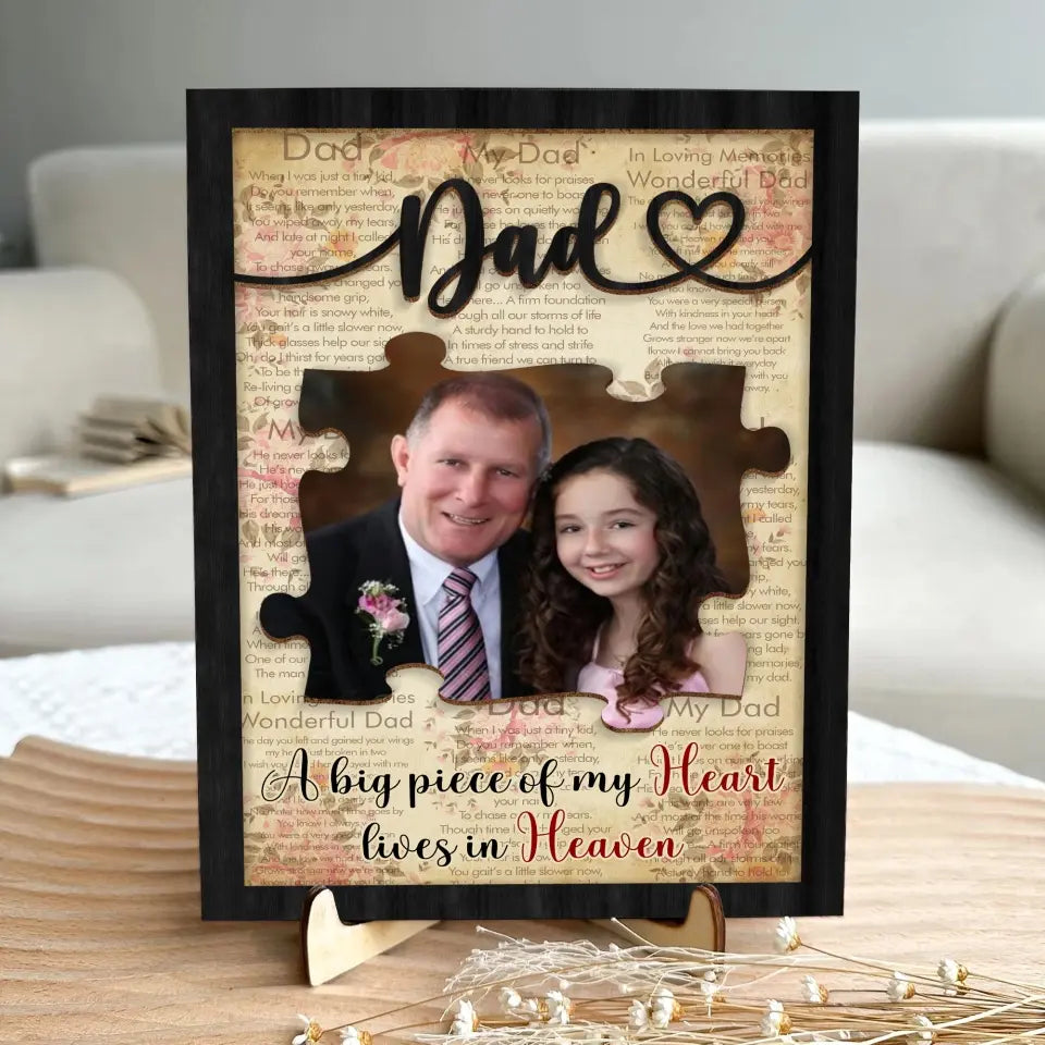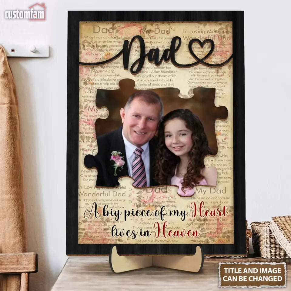 A Big Piece Of My Heart Lives In Heaven Custom Dad Memorial Wooden Sign, Gift For Dad
