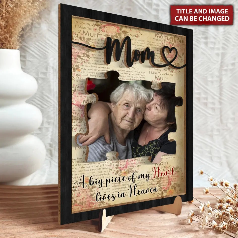 A Big Piece Of My Heart Lives In Heaven Custom Mom Memorial Wooden Sign, Gift For Mom, Loss Of Mom Gifts