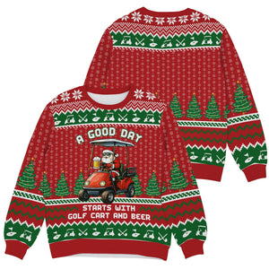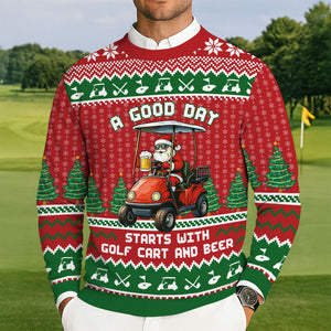 A Good Day Start With Golf Cart And Beer Christmas Ugly Sweater, Golf Ugly Christmas Sweater, Christmas Golf Shirt