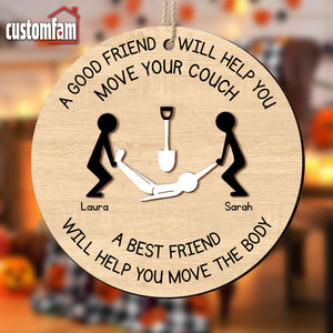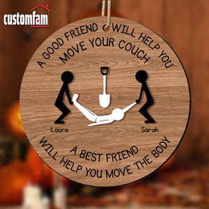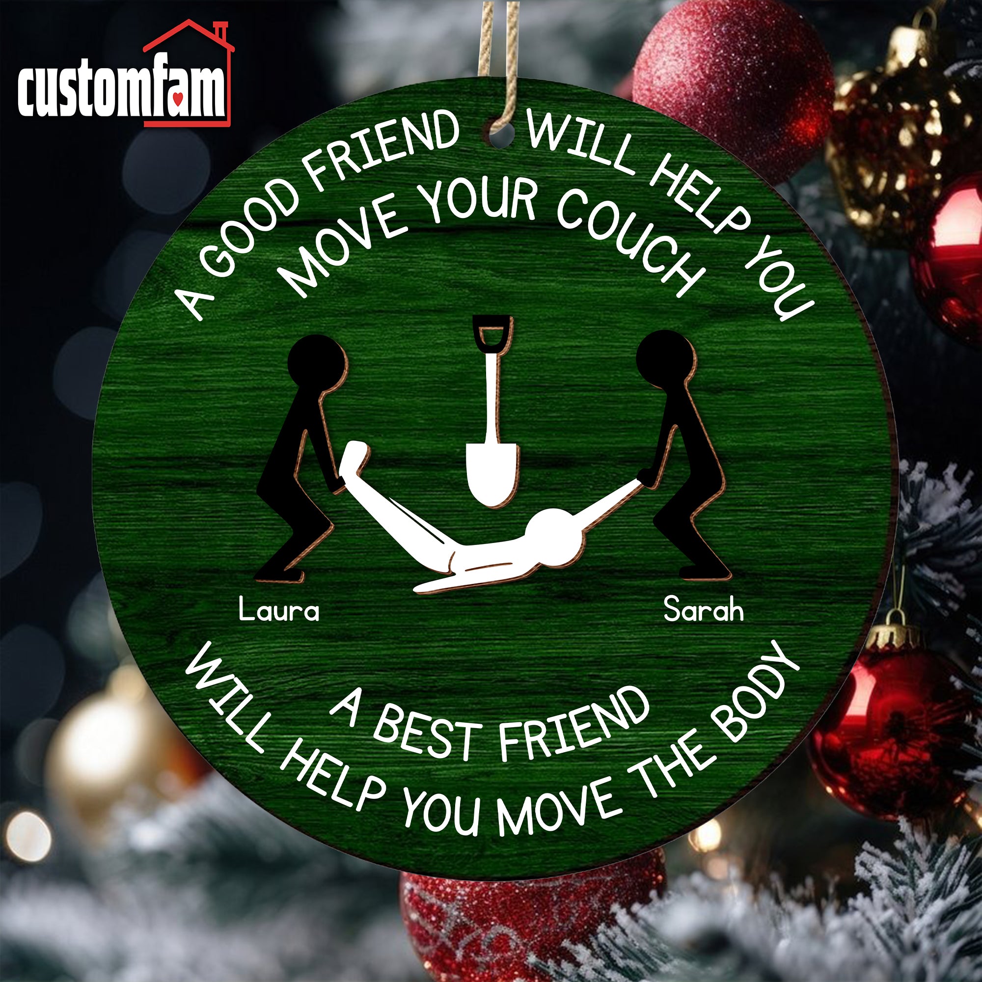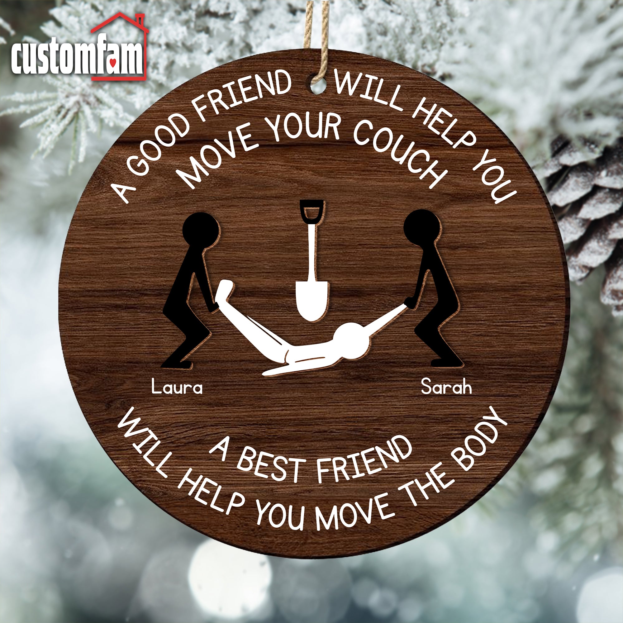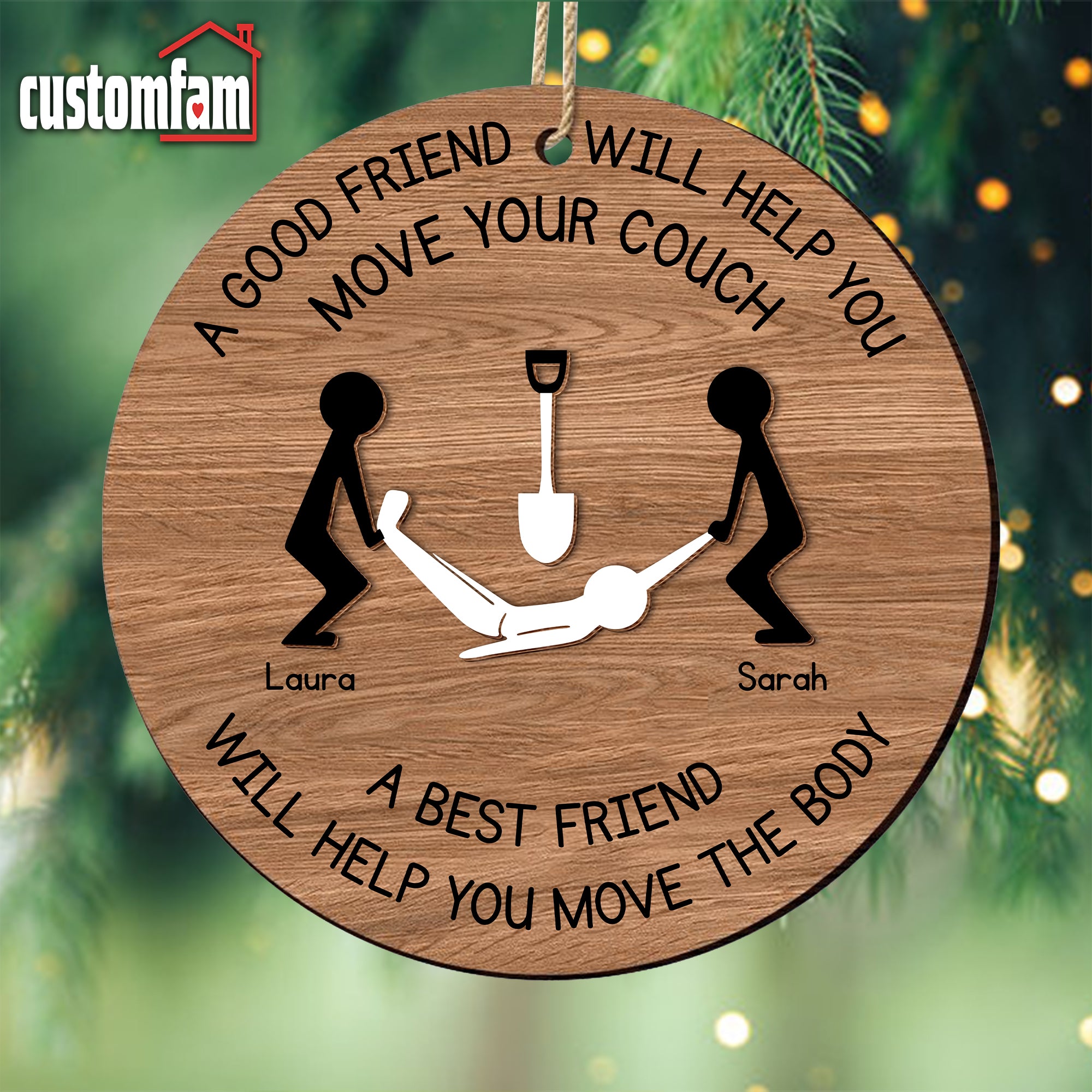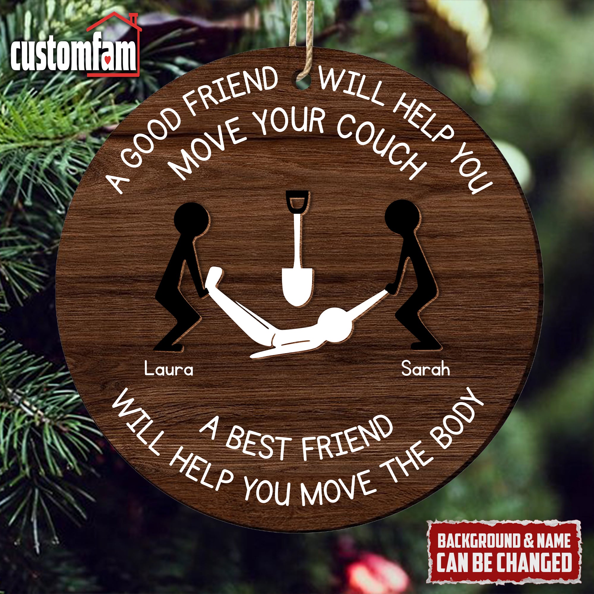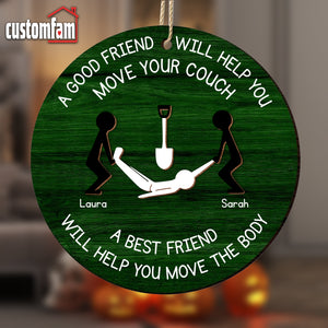 Customize this 2-layered ornament with your and your best friend’s names, making it a personalized and thoughtful addition to their holiday decor. The top layer features the humorous phrase, "A Good Friend Will Help You Move Your Couch," while the bottom layer adds contrast and dimension, creating a standout piece for any Christmas tree.