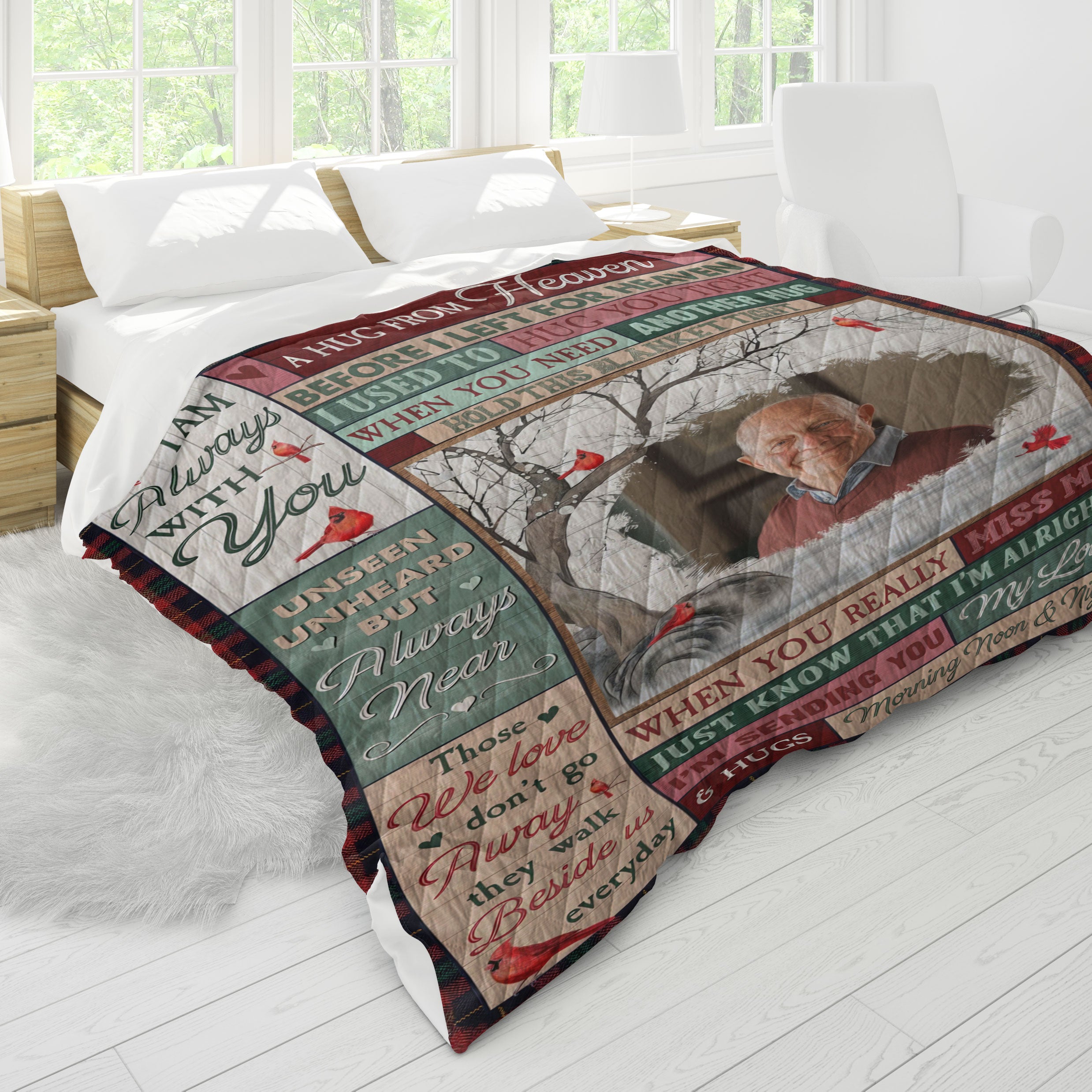 This memorial blanket is perfect for keeping on a couch, bed, or chair, serving as a daily reminder of the love and memories that remain. It’s not only a touching addition to your own home but also a thoughtful way to express sympathy and support to friends or family members, helping them find comfort in the remembrance of their loved one.