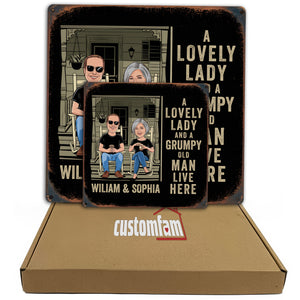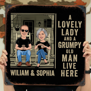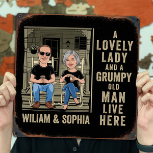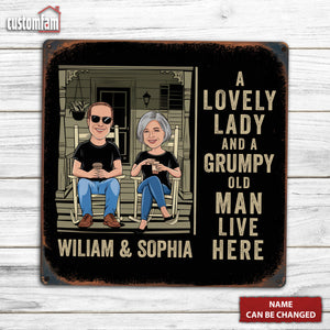 A Lovely Lady And A Grumpy Old Man Live Here Custom Metal Sign, Metal Wall Decor, Couple Gift