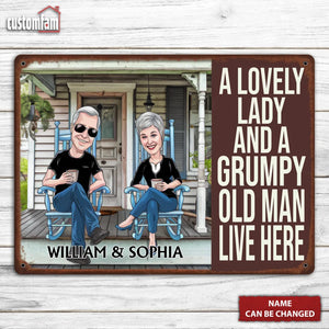 A Lovely Lady And A Grumpy Old Man Live Here Custom Metal Sign, Metal Wall Decor, Valentine Couple Gift