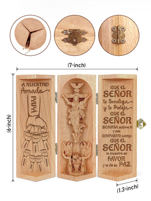 A Mi Amado Papá Personalized Openable Wooden Cylinder Sculpture of Jesus Christ, Christ Decor