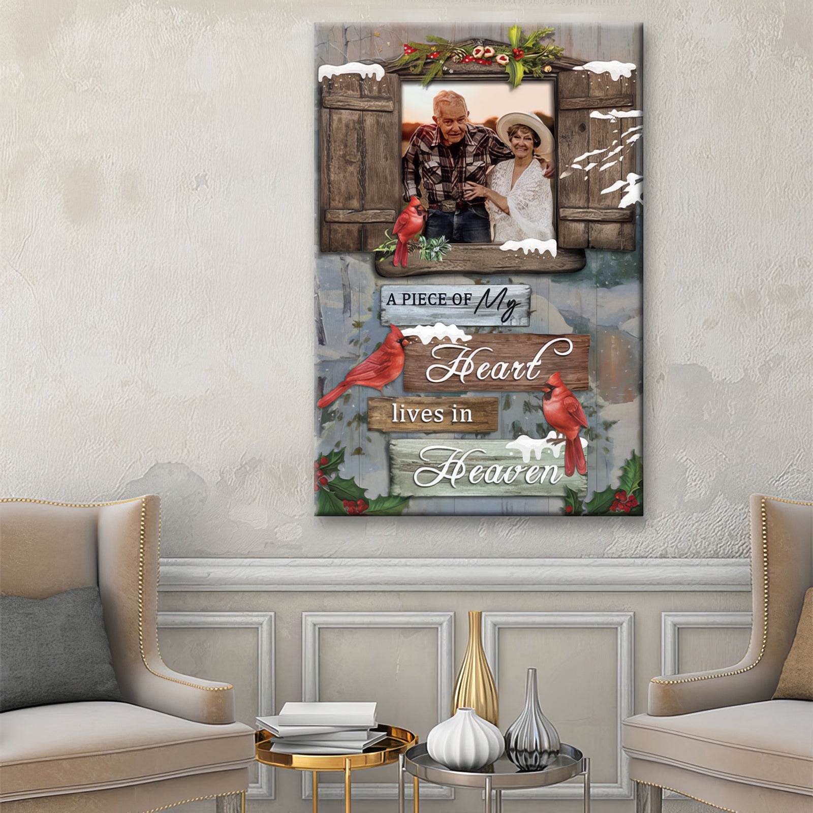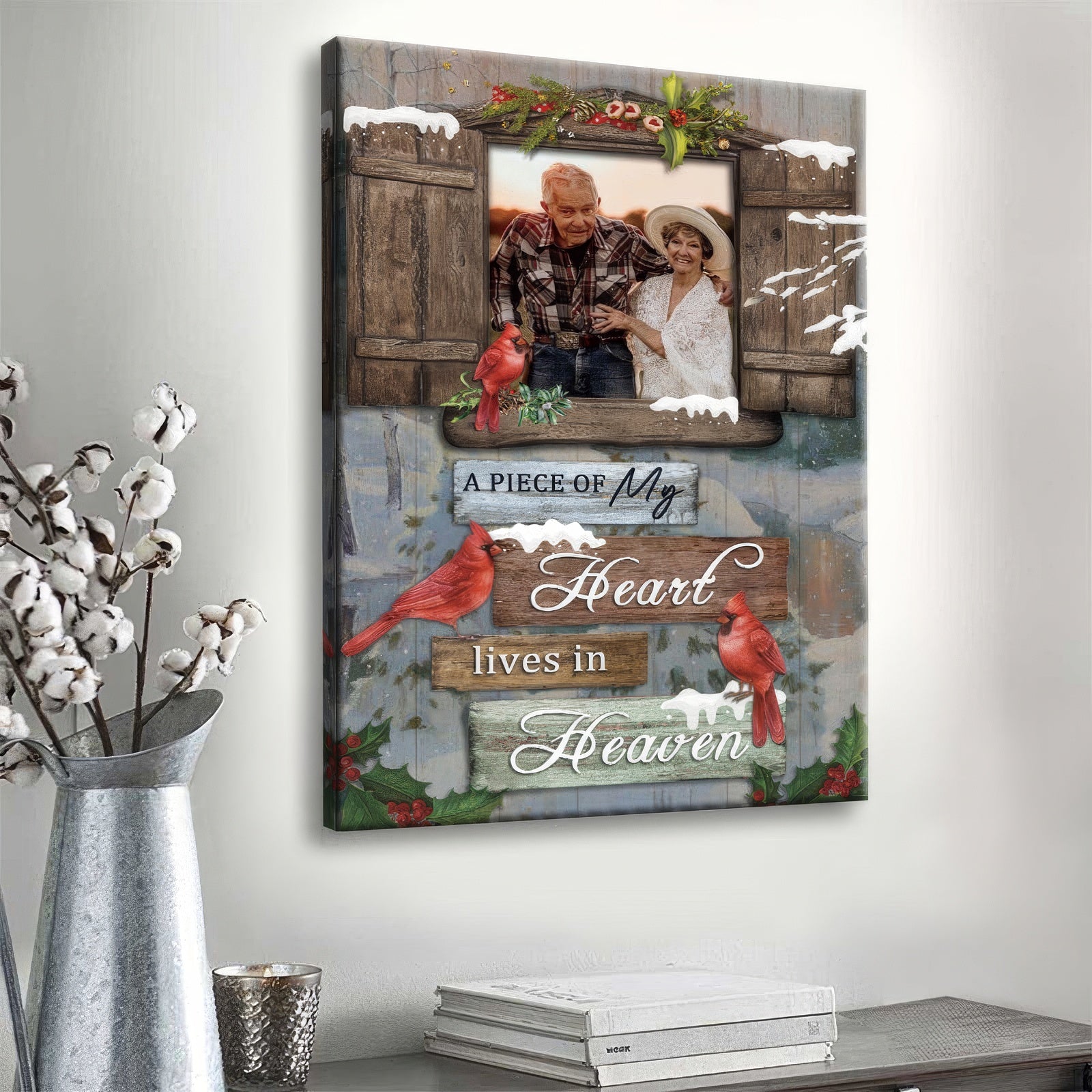 A Piece Of My Heart Lives In Heaven Custom Memorial Canvas Wall Art, Gift For Loss Of Loved One