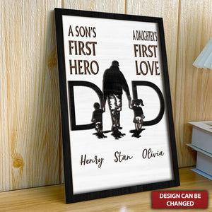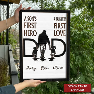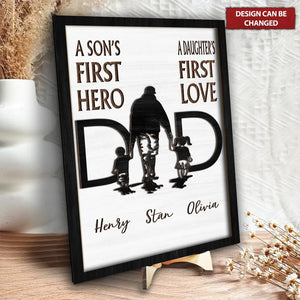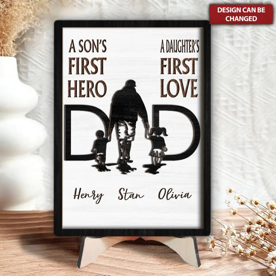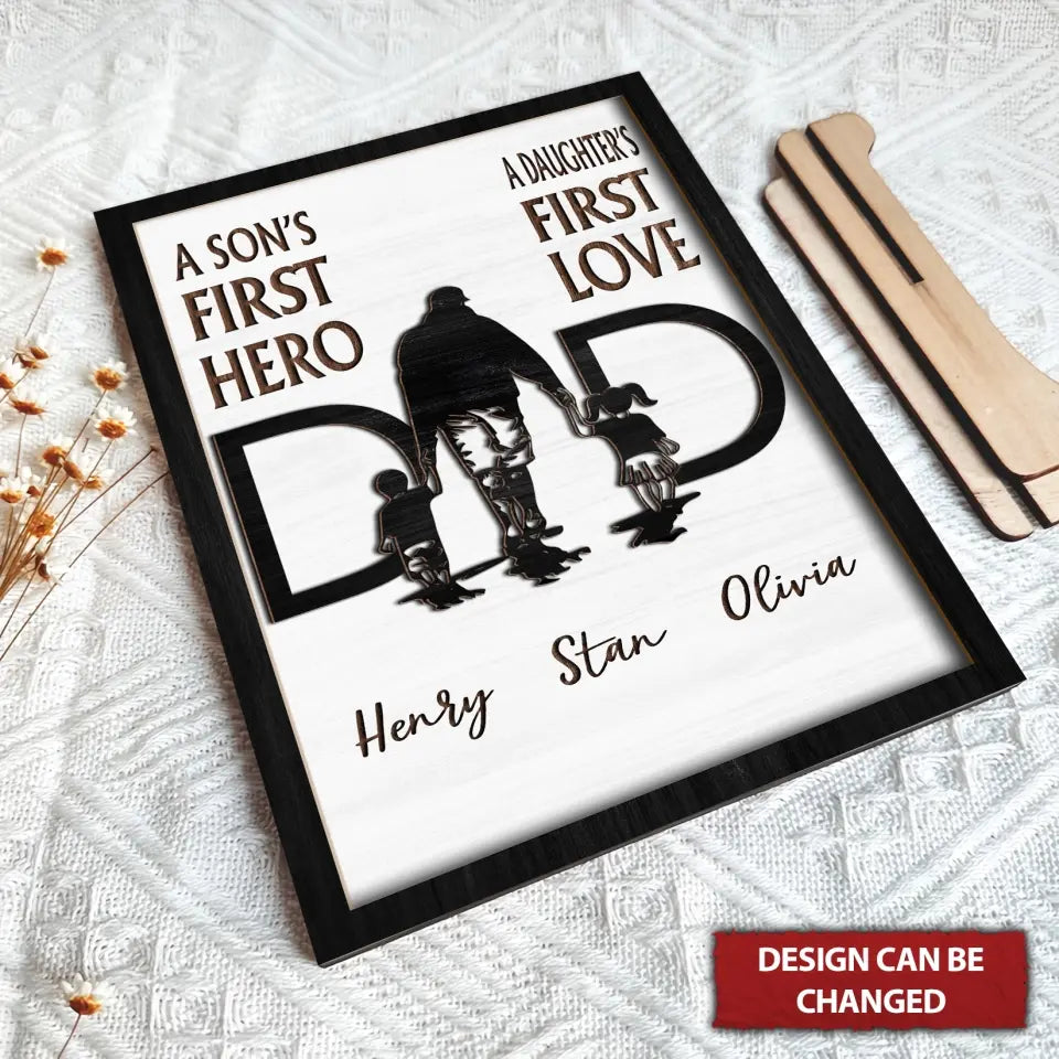 A Son's First Hero Personalized Dad Wood Sign, Custom Dad 2 Layered Sign With Kid Names, Gifts For Dad