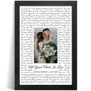 All You Need Is Love Custom Canvas Song Lyrics For Couple, Anniversary Gifts For Her, Wall Art Decor