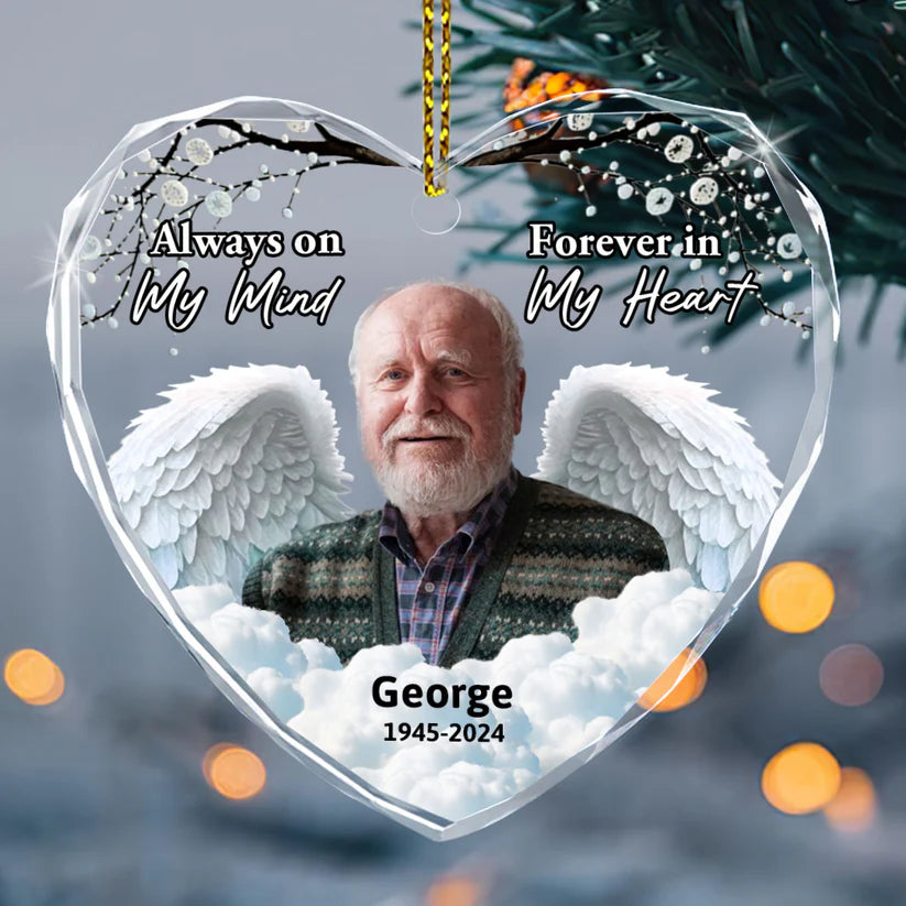 Always On My Mind, Forever In My Heart Glass Ornament, Personalized Memorial Ornament, Christmas Tree Decor