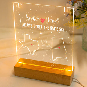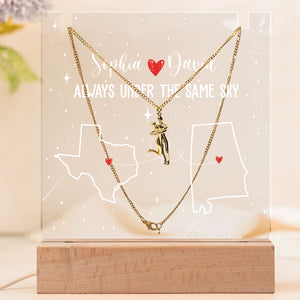 Always Under The Same Sky Personalized LED Light Acrylic Plaque With Couple Necklace, Valentine Gifts