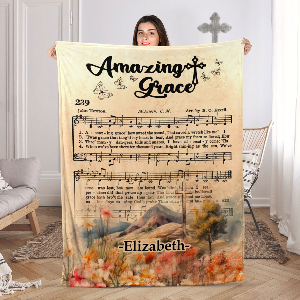Amazing Grace Personalized Blanket, Christ Decor, Christian Gifts
