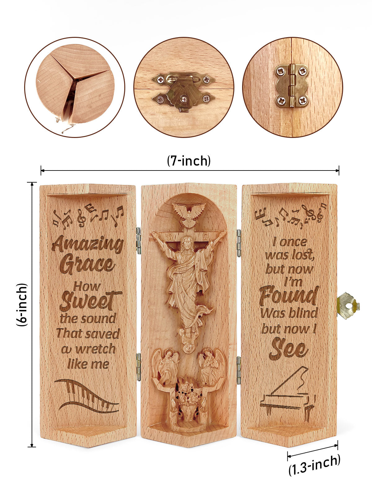 Amazing Grace Song How Sweet The Sound Openable Wooden Cylinder Sculpture of Jesus Christ, Christian Gifts