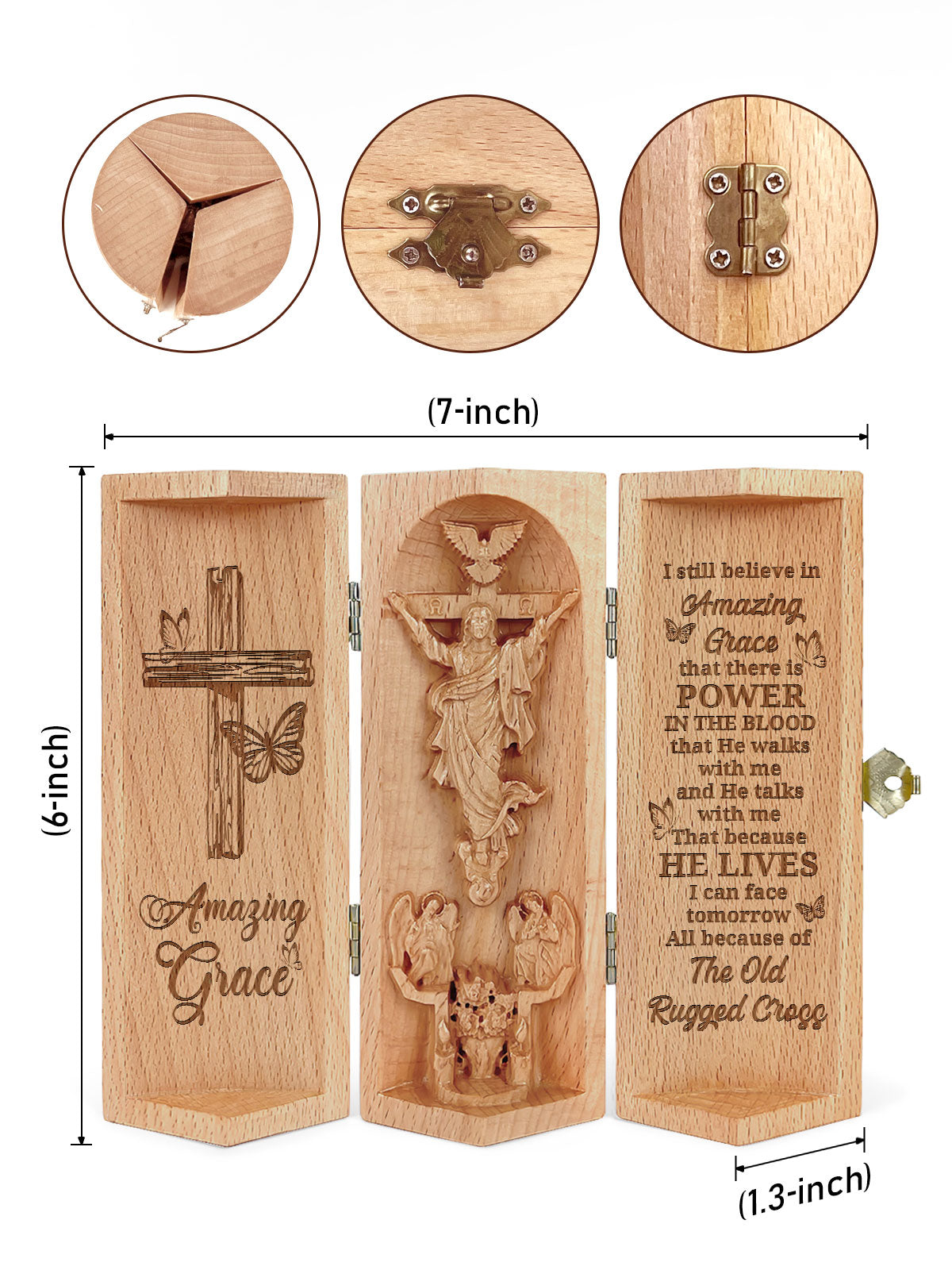 Amazing Grace Statue of Jesus Openable Wooden Cylinder Sculpture of Jesus Christ, Christian Gifts