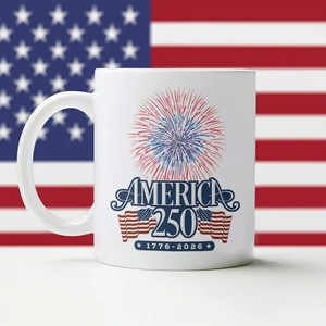 America 250 Firework Mug, Unique Patriotic Gifts Ceramic Coffee Mug