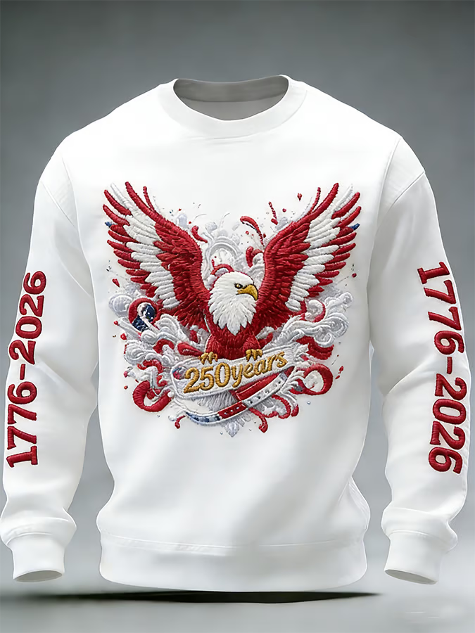 America 250th Anniversary Hoodie, Patriotic Eagle Flag Pullover, White Hooded Jumper 4th Of July Gift