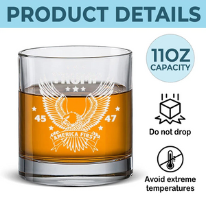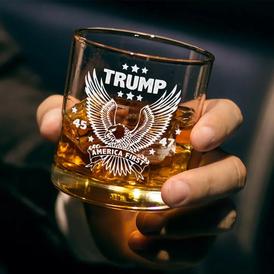 America First Trump2024 45 47 Whiskey Glass, Patriotic Wine Glasses, Presents For Dad