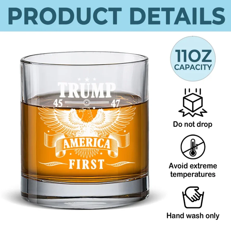 America First, Trump2024 USA President Whiskey Glass, Glass Stemware, Presents For Dad
