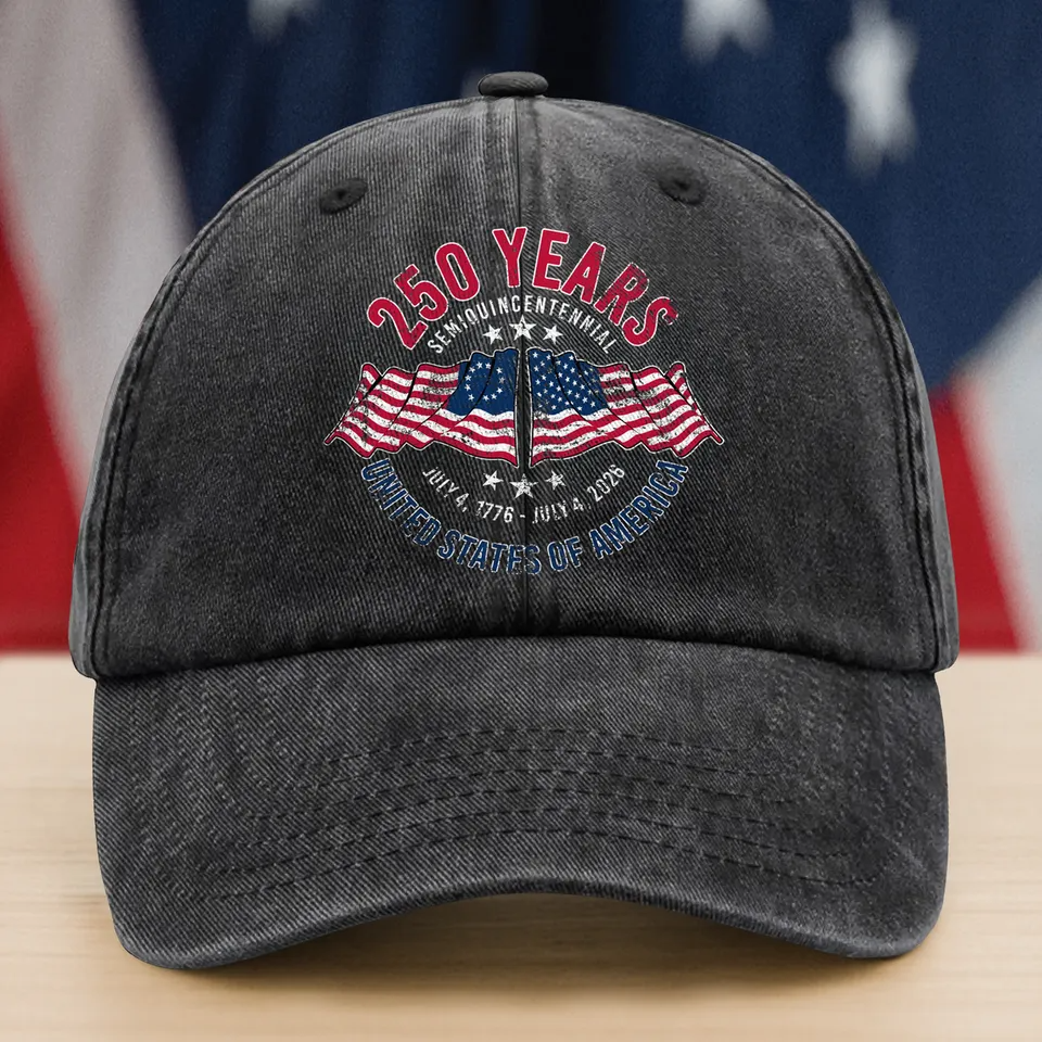 American 250 Years Semiquincentennial Washed Denim Baseball Cap, American Patriotic Gift