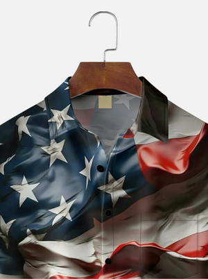 American Flag Flying Art Independence Day Hawaiian Golf Shirt, 250th Anniversary Tropical Vibe Men's Golf Shirt
