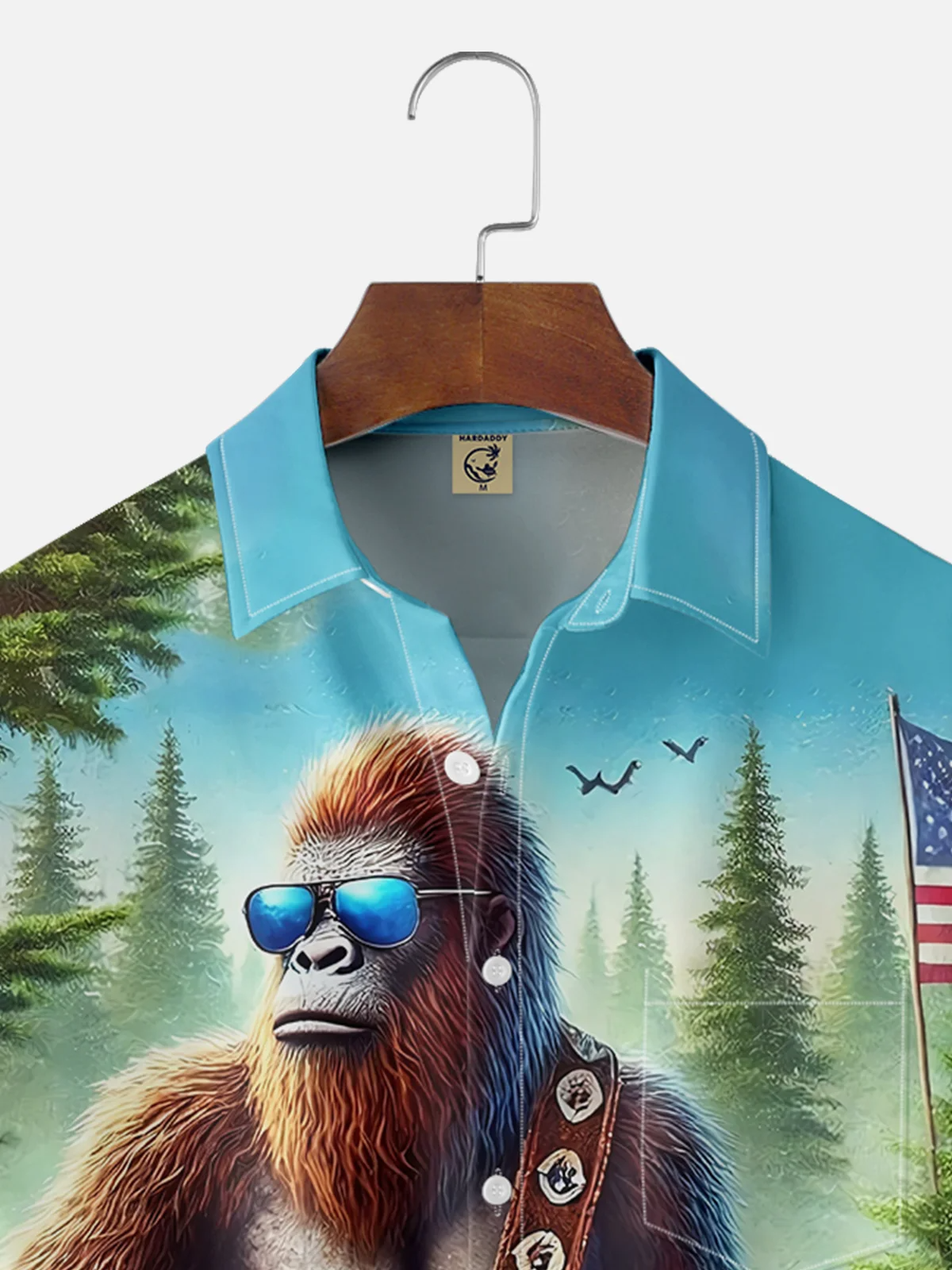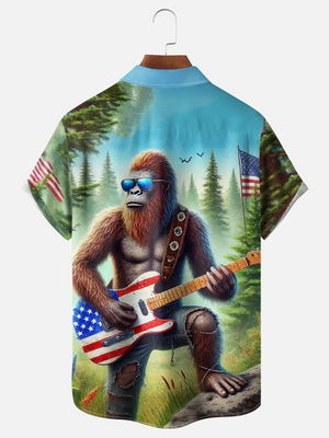 American Flag Patriot Bigfoot Guitar Rock Hawaiian Golf Shirt, 250th Anniversary Tropical Vibe Men's Golf Shirt