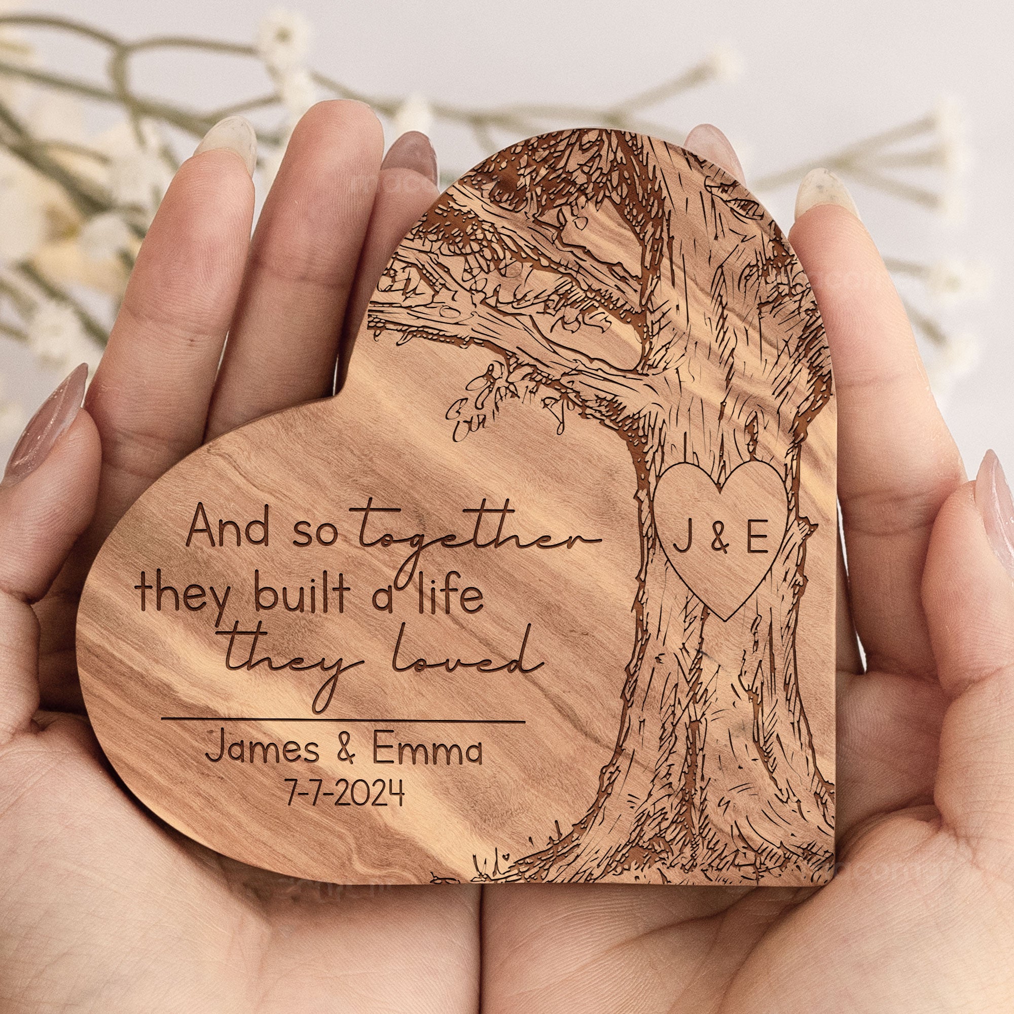 And So Together They Built A Life They Loved Personalized Engraved Wood Plaque, Couple Gift