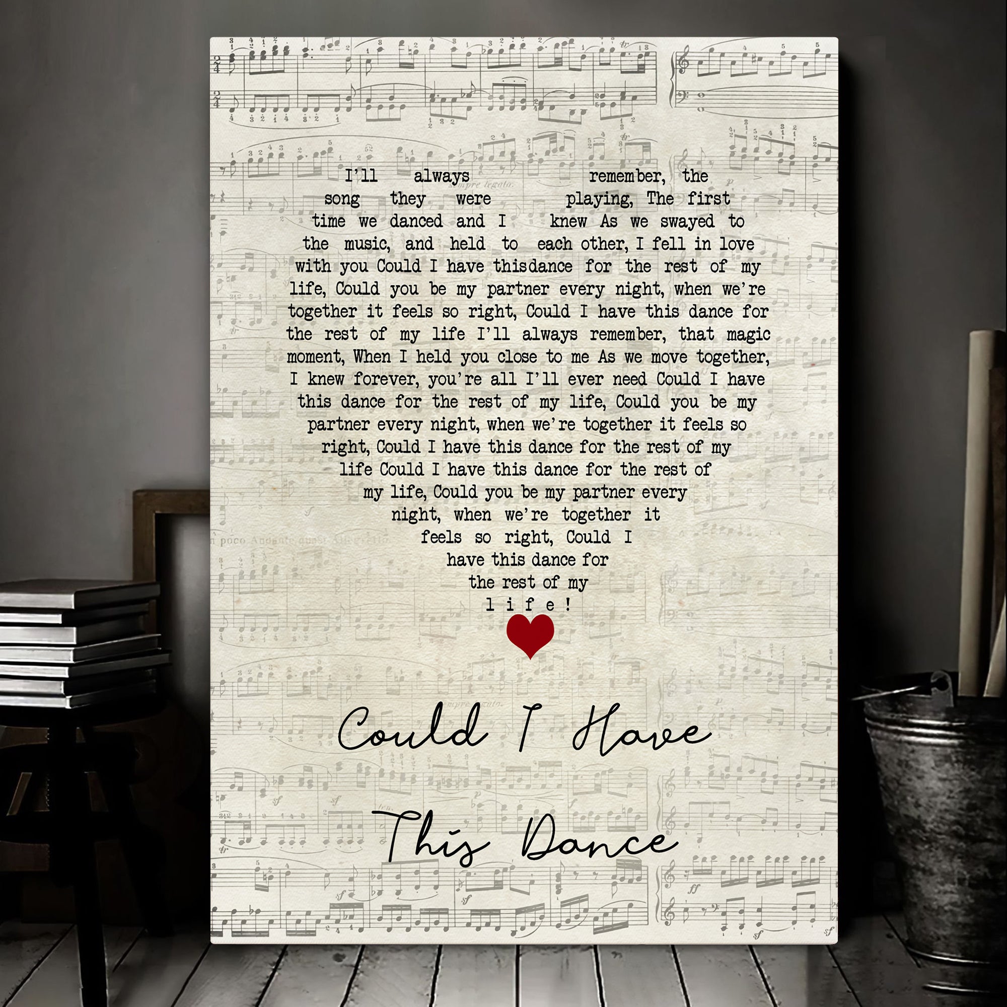 "Could I Have This Dance" is a song that speaks to the beauty of love, connection, and the desire to share one’s life with another. The lyrics express the joy and intimacy of dancing through life together, making it a favorite for weddings and romantic occasions. The song’s themes of lasting love and commitment are beautifully captured in this heart-shaped design, symbolizing the bond between two people who want to spend their lives together.