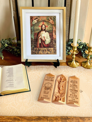 As For Me And My House, We Will Serve The Lord - Openable Wooden Cylinder Sculpture of Jesus Christ | Christian Gift