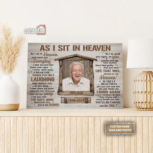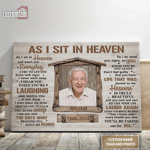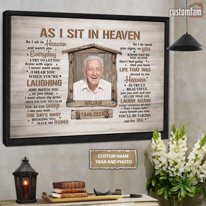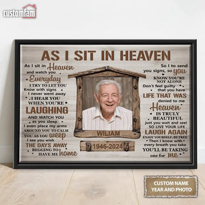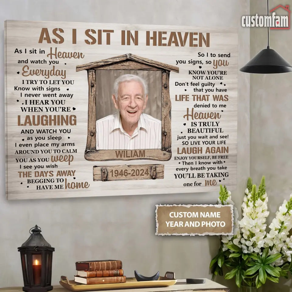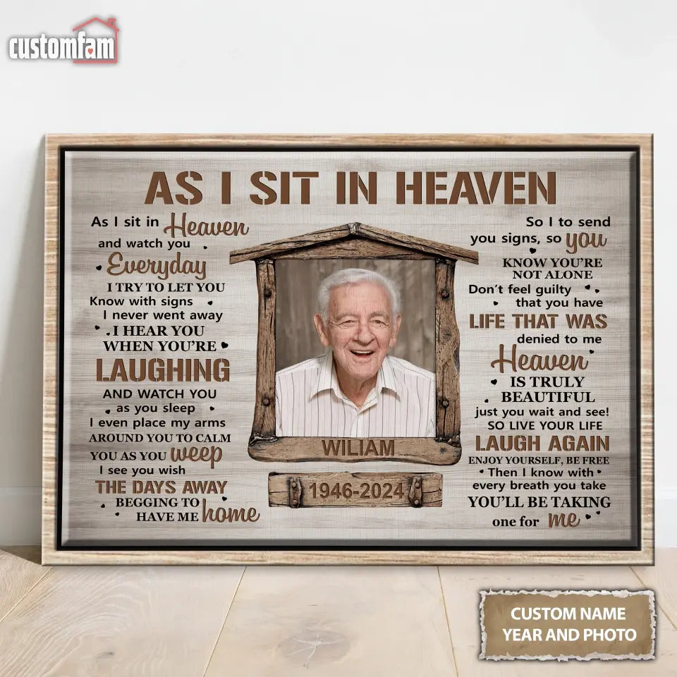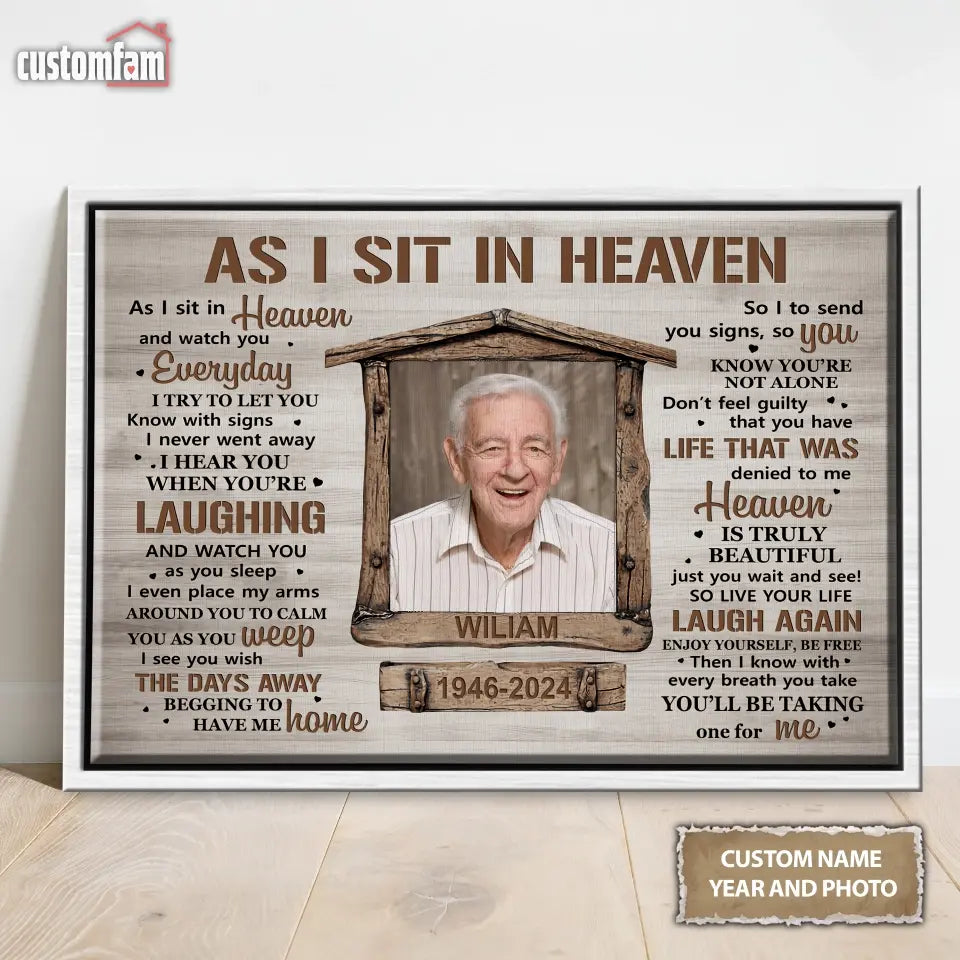 As I Sit In Heaven Personalized Canvas Prints, Custom Photo And Name Memorial Framed Canvas, Loss Dad Mom Sympathy Gifts, Remembrance Gifts For Lovers