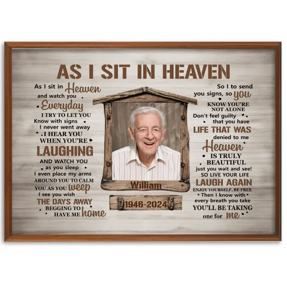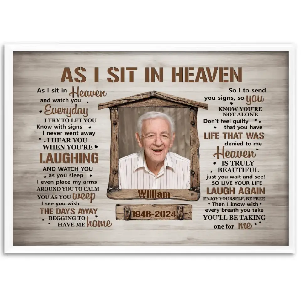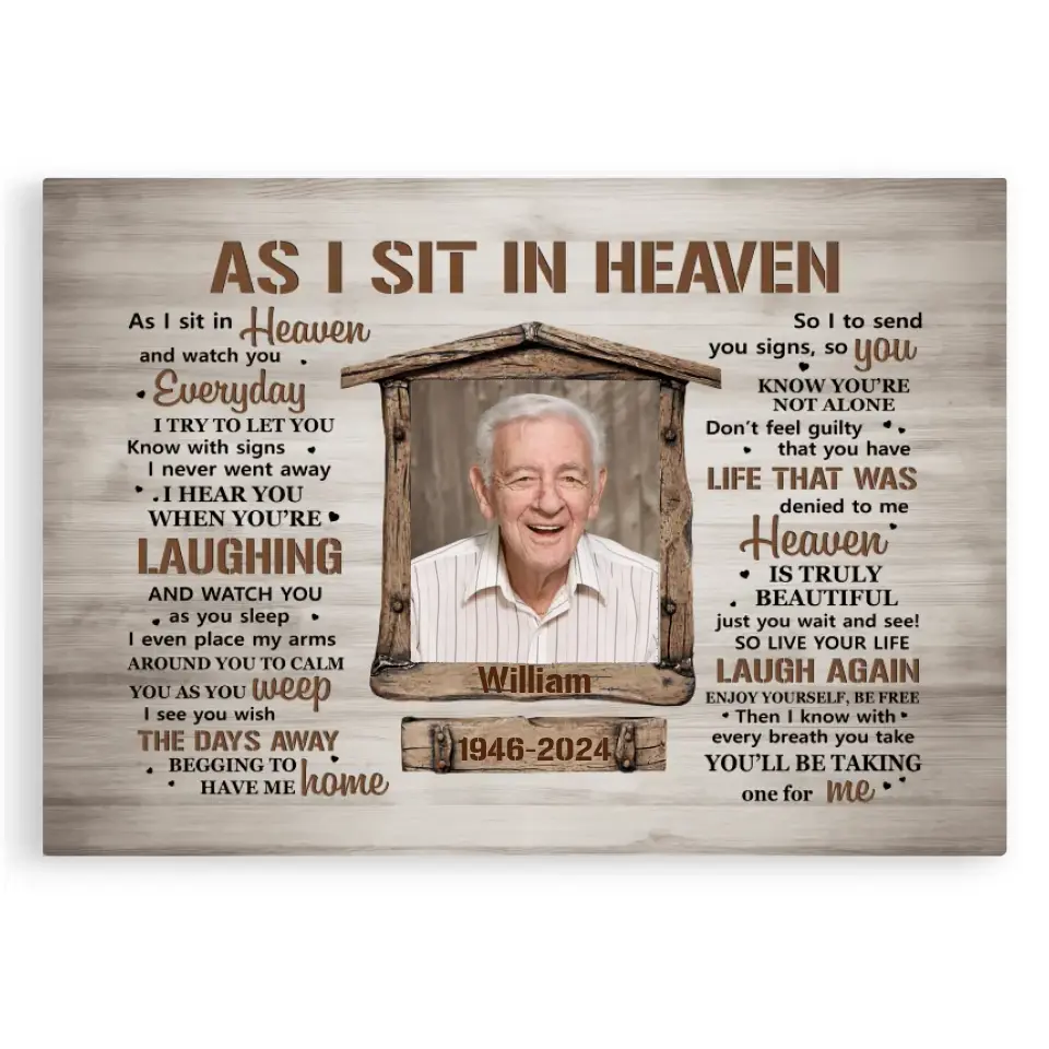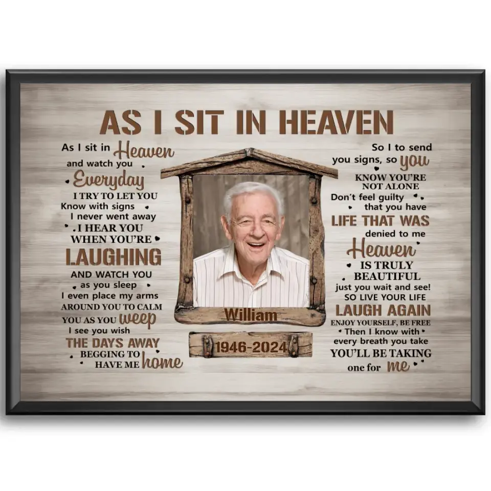 As I Sit In Heaven Personalized Canvas Prints, Custom Photo And Name Memorial Framed Canvas, Loss Dad Mom Sympathy Gifts, Remembrance Gifts For Lovers