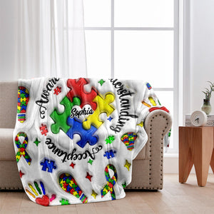 Autism Awareness Personalized Blanket, Autism Awareness Blanket, Bedroom Decor