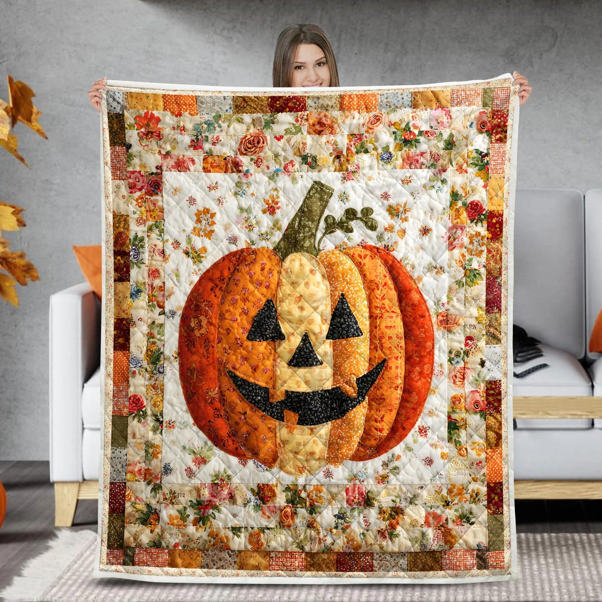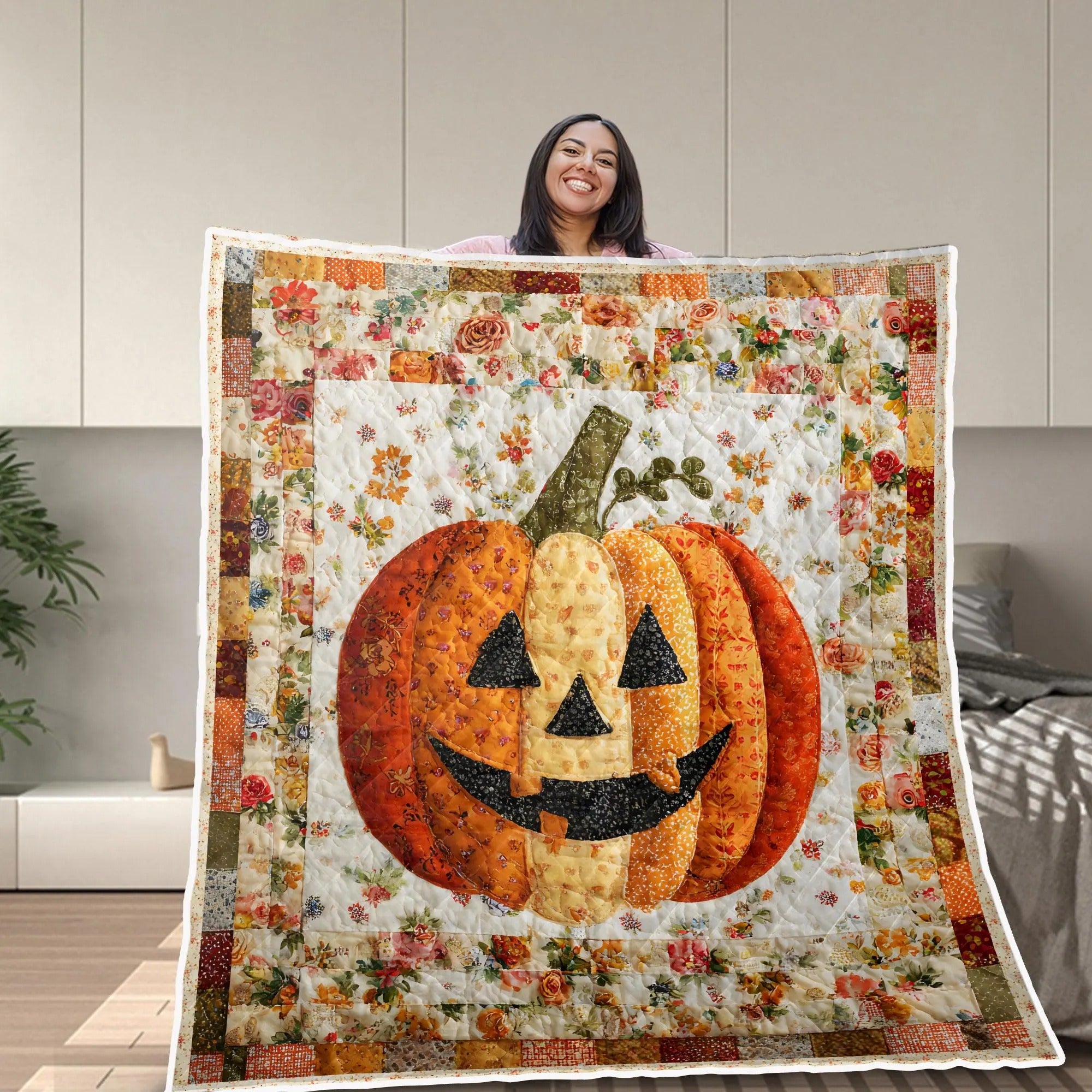 Autumn Fall Pumpkins Quilted Blanket, Halloween Blanket, Spooky Season Decor