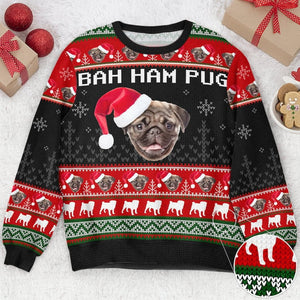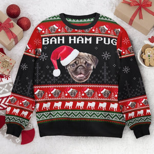 Bah Ham Pug Personalized Custom Name Photo Sweater, Unique Christmas Gift For Animal