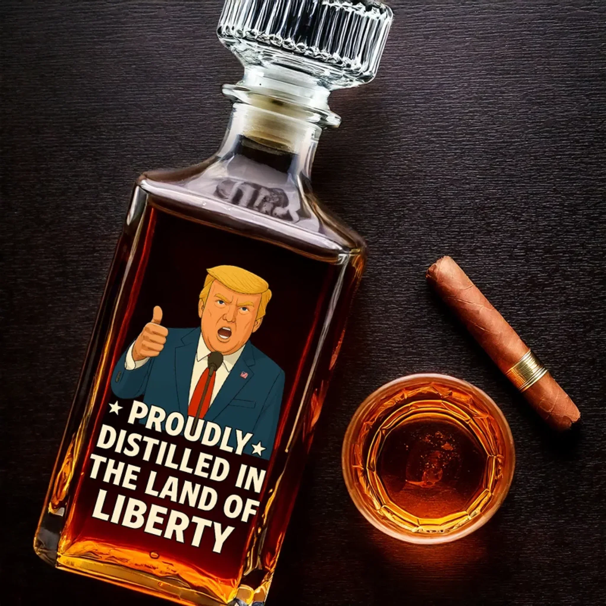 Barrel-Aged With 100% Freedom Whiskey Decanter Set American Glassware Wine Glasses Set
