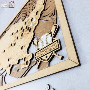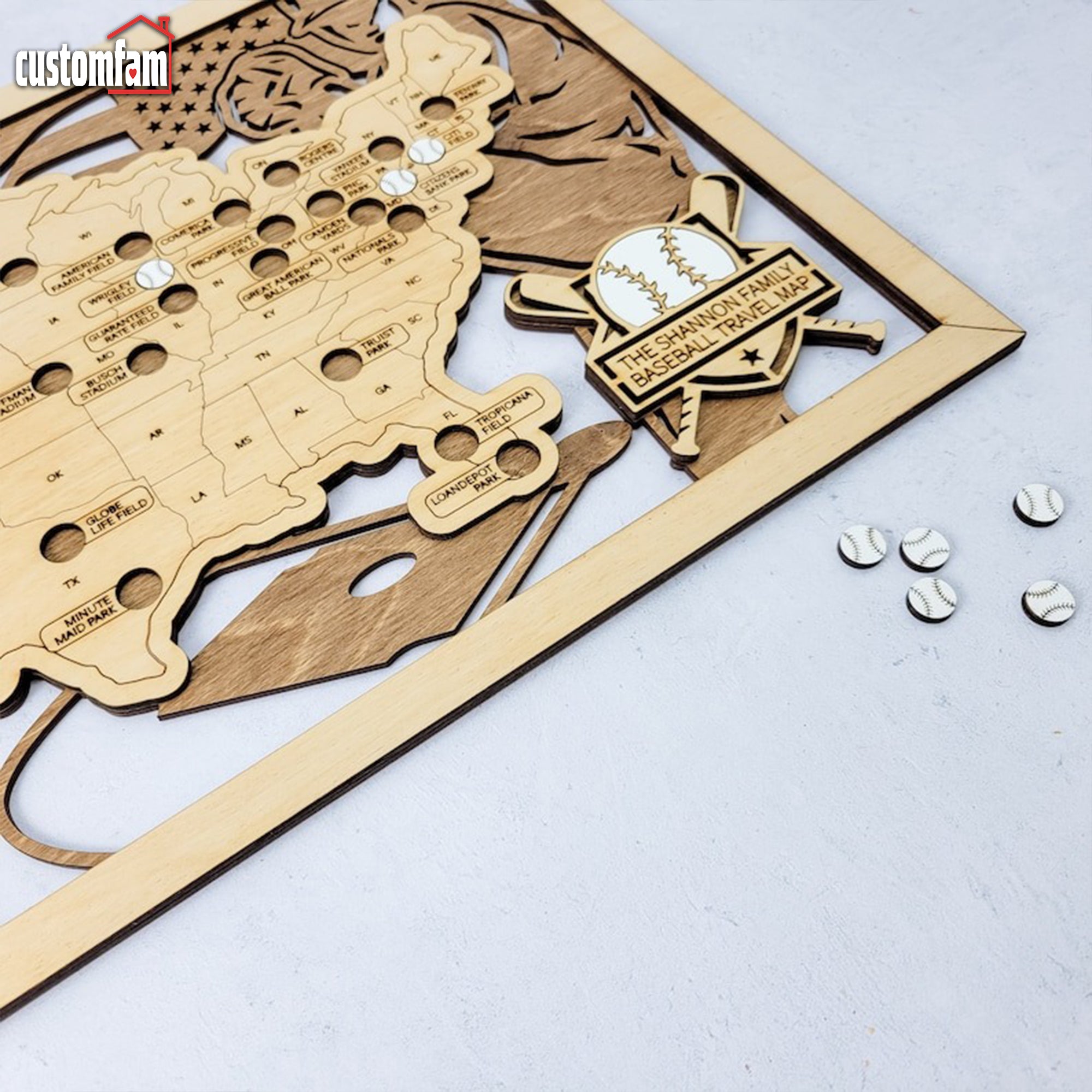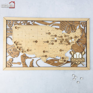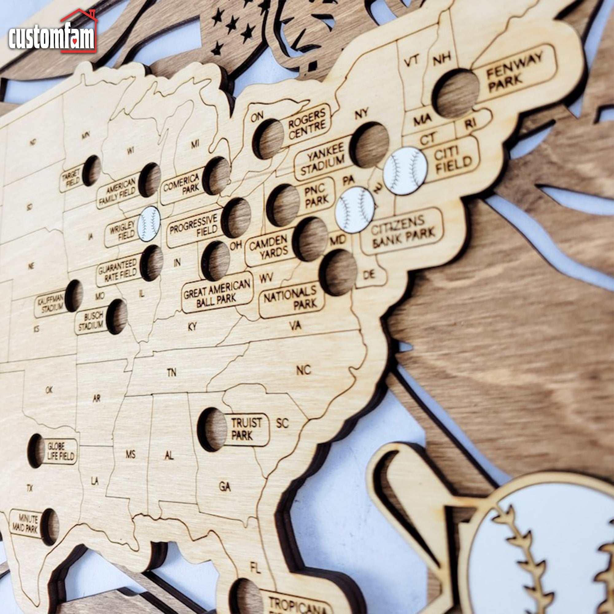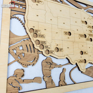 Baseball Stadium Map, Custom Wooden Map, Gift For Baseball Lovers