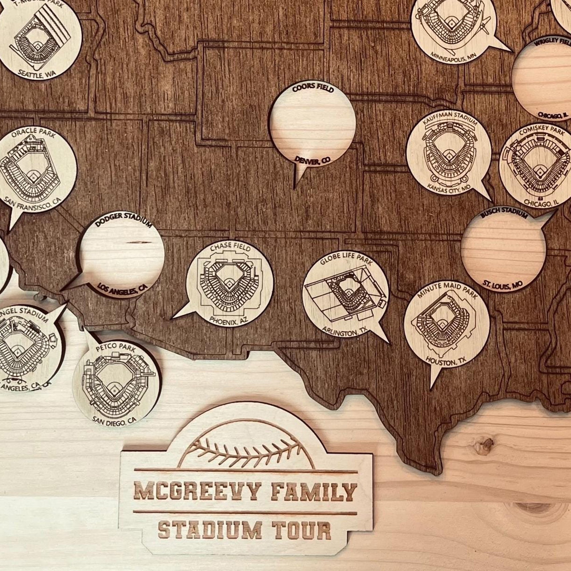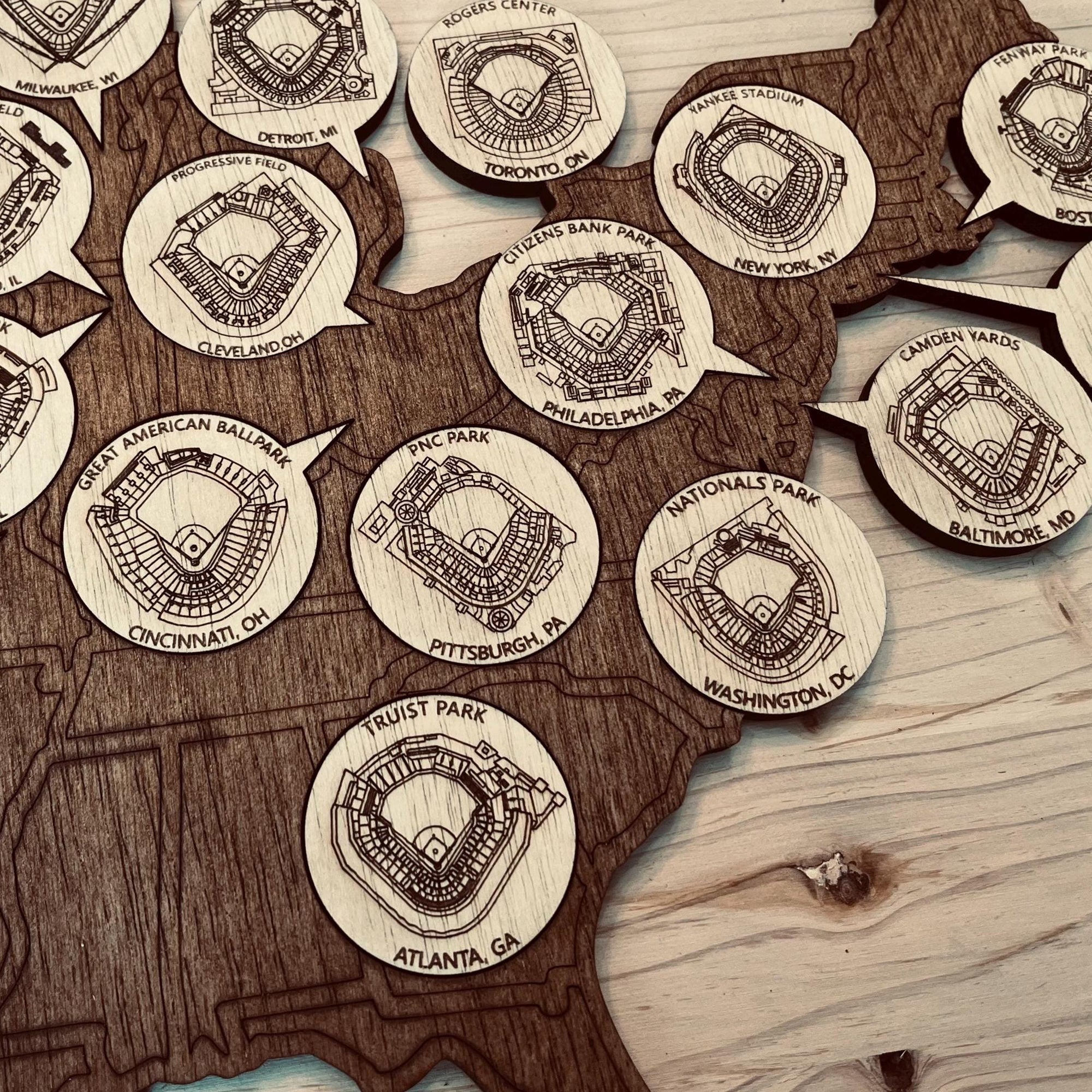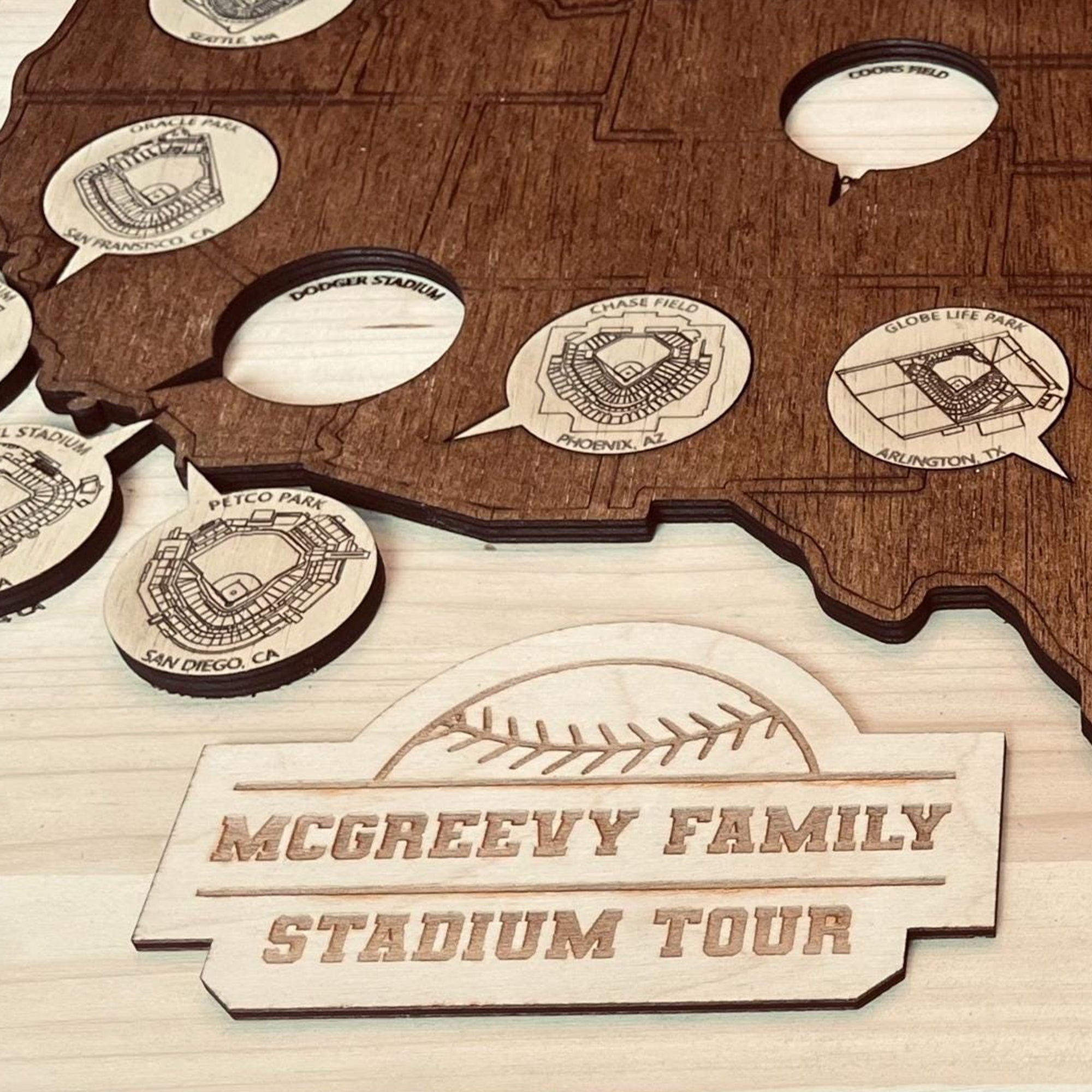 Baseball Stadium Map, Wooden Wall Map, Baseball Tracker, Gift For Baseball Lover