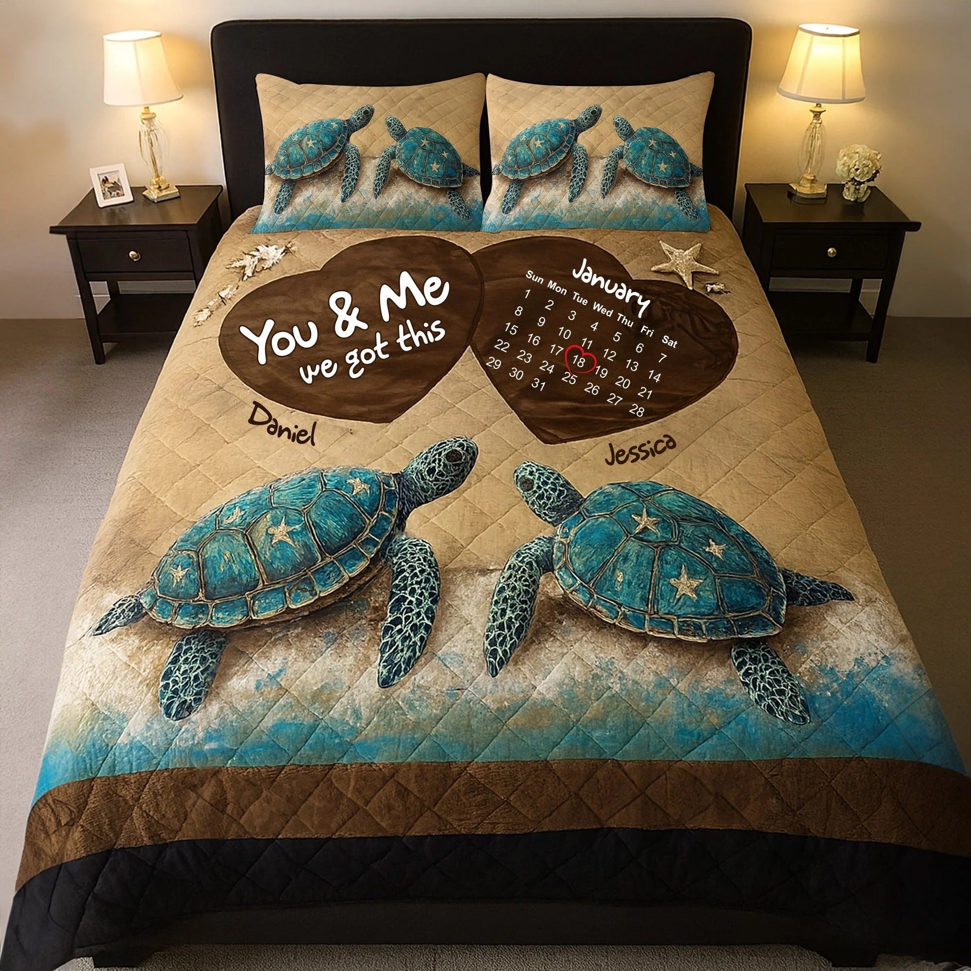 Beachy Sea Turtle Quilt Bed Set, Personalized Anniversary Gifts For Couple, Couple Valentine Gift, Valentine's Day Ideas